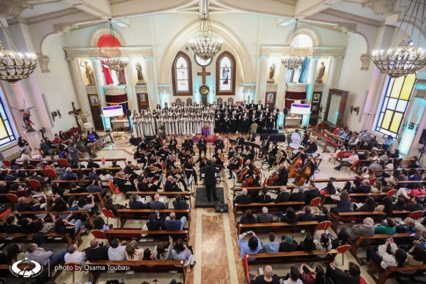 The Fountain of Love Choir held a magnificent Easter concert on April 7 and 8, 2022, at the Sacred Heart of Jesus Church in Tla‘ Al-Ali, presenting an outstanding collection of Easter hymns, prayers, and musical works, with stunning performances that captivated the audience.